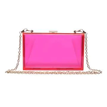 Show moreIntroducing the ultimate accessory for your evening outings, this acrylic clutch bag combines style and functionality in a brilliant way. Made from premium acrylic, this elegant piece is designed to turn heads wherever you go. With its striking golden button atop, it provides effortless access while ensuring a chic appeal. Measuring at just 7.1x4.1x2.2 inches, it has enough room for your essential items including your phone, cards, and lipstick, making it a perfect companion for any event.