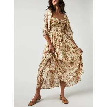 In a sea of floral dresses, the Women Bohemian Long Puff Sleeve Maxi Dress stands apart due to its thoughtful design and quality materials. Unlike many mass-produced dresses on the market, this piece emphasizes a balance between style and comfort. The combination of cotton and polyester fabric ensures durability and a soft feel, setting it apart from rigid or scratchy alternatives that can detract from the overall wearing experience. Additionally, the unique puff sleeve design offers a contemporary twist that is hard to find in many other boho dresses.