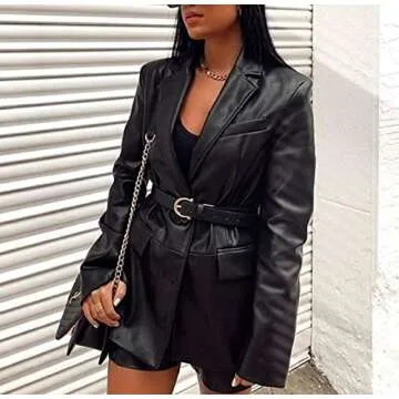 Women Button Down Faux Leather Jackets Suede Tassel Hem Crop Jacket Oversized PU Blazer Coat Outwear Trendy Streetwear