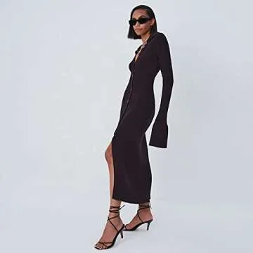 Show more Step into a world of elegance with this women's long sleeve button-down v-neck knit dress. Crafted from high-quality, breathable fabric, this dress is not only comfortable but also flattering for all body types. The sexy v-neck design adds a touch of sophistication, while the button-down feature lends a stylish twist. Perfectly tailored, this dress accentuates your curves, ensuring you feel fabulous at any occasion.