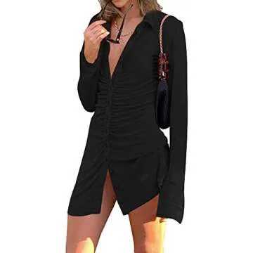 Show moreIntroducing the Women Casual Polo Ruched Bodycon Dress, a stunning blend of retro style and modern elegance! This sexy V-neck button mini dress is a must-have for fashion-forward women seeking a blend of comfort and chic appeal. Crafted from high-quality materials, it features a flattering ruched design that hugs your curves beautifully, giving you a confident silhouette. Perfect for a wide array of occasions, this dress comes in a sleek black color that effortlessly matches any accessory, making it a versatile piece in your wardrobe. Whether you’re looking to channel your inner Y2K aesthetic or simply seeking to elevate your casual dressing game, this vintage-inspired piece delivers on both style and comfort.