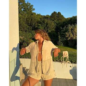 Women Casual Two Piece Shorts Set Loose Button Cardigan Shirt Elastic Waist Lounge Shorts Tracksuit Sumer Outfits(A Fleece Khaki,S)