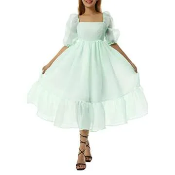Women Cute Puffy Dress Lantern Bell Sleeve Ruffle Dress Princess Bubble Dress Valentine Day Prom Flowy Dresses Gift