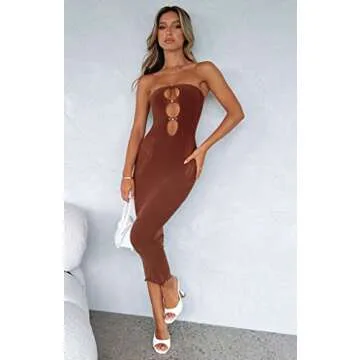 Show moreUnveiling the chic and sophisticated Women Cutout Backless Maxi Dress, the ultimate choice for your next outing! This stunning piece, with its elegant design and sultry allure, instantaneously transforms any evening into a memorable occasion. Tailored from high-quality materials, this dress features a striking cutout back that adds a touch of boldness while maintaining an air of elegance. The strapless spaghetti straps provide exceptional support while emphasizing your shoulders and arms, making it ideal for showcasing your fashion-forward style. Whether it's a summer cocktail party, a romantic dinner date, or a glamorous event, this dress is designed to ensure all eyes are on you.