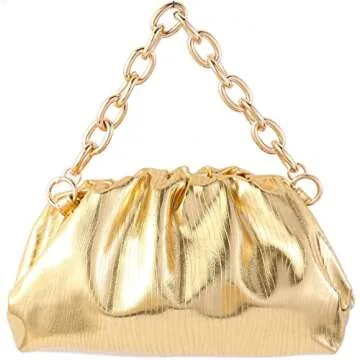 Women Dumpling Crossbody Bag Cloud Evening Bag Sparkly Clutch Purses Drawstring Strap Ruched Shoulder Bag (metal small gold)