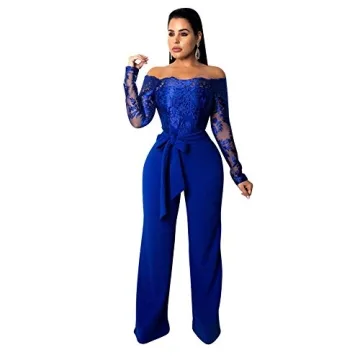 Show more Introducing the stunning Women Elegant Appliques Lace Patchwork Jumpsuit, a must-have addition to any stylish wardrobe! This exquisite jumpsuit is designed for those who desire elegance, comfort, and versatility. Featuring a sexy off-shoulder design and intricate floral embroidery, it epitomizes chic sophistication for special occasions. Crafted from high-quality materials, this bodycon piece effortlessly flatters your figure with its slim fit and high-waisted silhouette, ensuring you turn heads at any event. Whether you're attending a wedding, cocktail party, or simply enjoying a night out, this jumpsuit emphasizes your curves while keeping you comfortable and stylish.