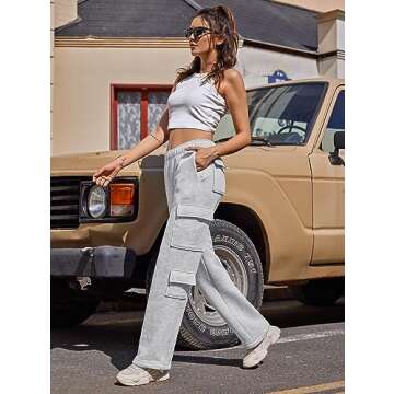 Women Fleece Cargo Sweatpants High Waisted Casual Baggy Joggers Pants(Light Grey, X-Large)