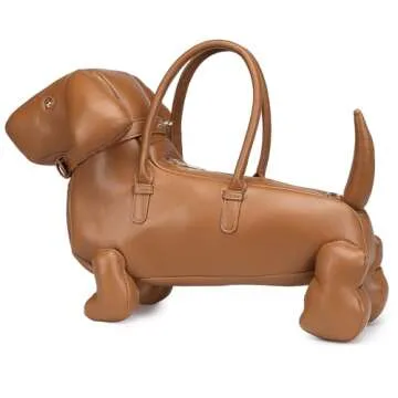 Women Fun Dog Shaped Crossbody Shoulder Bag Handbag PU Leather Unique Novelty Dog Shaped Purse(1 Brown)