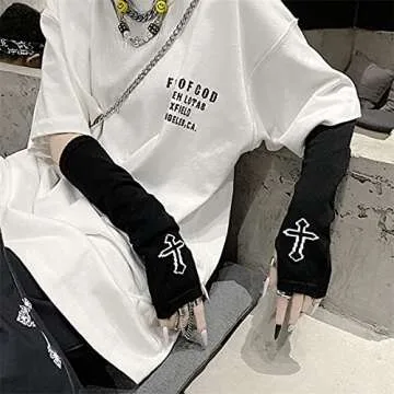 Women Gloves Goth Arm Sleeve Cool Black Moon Cross Printed Hip Hop Arm Warmers