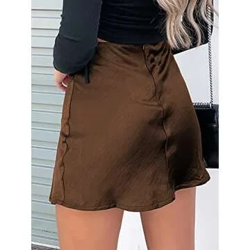 Introducing the Women High Waisted A-Line Skirt in a rich chocolate shade — a wardrobe essential that marries style with comfort! This skirt exudes sophistication with its silky finish, giving you a polished look for any occasion. Designed with a mini length and a chic side split, it offers both playfulness and elegance, making it perfect for dressing up or down. Crafted with a high waist and an invisible back center zip, this skirt ensures a flattering fit that accentuates your silhouette.