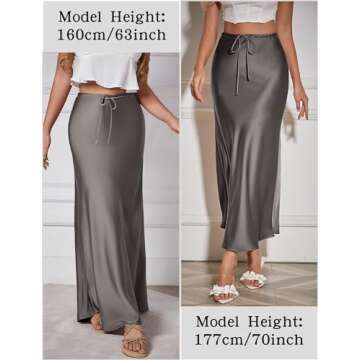 Women High Waisted Slip Skirts Casual Satin Bodycon Skirt A Line Wrap Skirts Silk Y2K Skirt Grey M