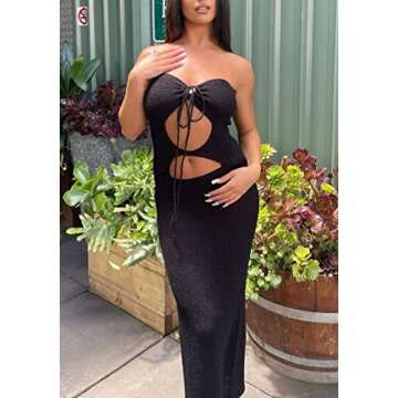 Show moreIntroducing the ultimate statement piece for your wardrobe – the Women Hollow Out Long Spaghetti Strap Dresses Cutout Bodycon Maxi Halter Dress Sexy Backless Party Dress Clubwear B-Black. This stunning dress is designed with the fashion-forward woman in mind, perfect for making an unforgettable impression at any event. Crafted from high-quality polyester, this dress boasts a soft touch that feels luxurious against the skin while being lightweight and breathable, making it an excellent choice for year-round wear.