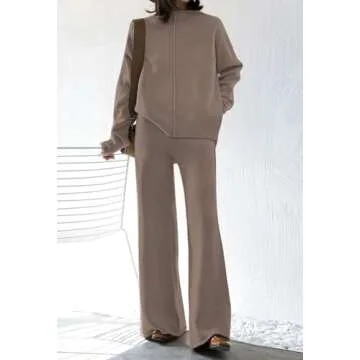 2 piece sweater knit wear for women, sweater top wide leg pants sweatsuits sets