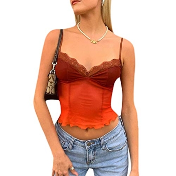 Sexy Orange Lace Crop Top - Summer Strap Tank for Women