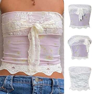 Women Lace Strapless Tube Tops Sleeveless Low Cut Crop Top Backless Bodycon Elastic Push Up Vest Tops Y2k Streewear (Lace Printed,Small)