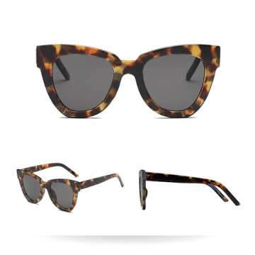 Women Lady Retro Cat Eye Sunglasses Designer Square Frame Eyeglass Shades UV Protection (Tortoiseshell+Grey)