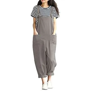 Women Large Plus Size Baggy Overalls Casual Wide Leg Pants Sleeveless Rompers Jumpsuit Vintage Haren Overalls Grey Tag XL