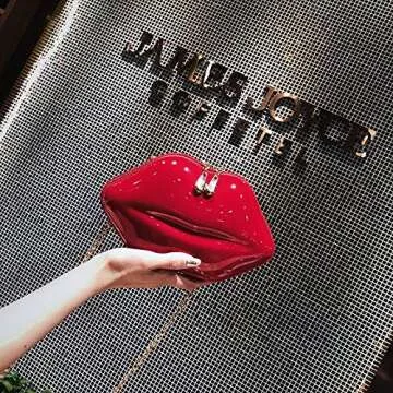 Women Leather Lips-shaped Evening Clutch Purses Crossbody Bags Vintage Banquet Handbag (Red)