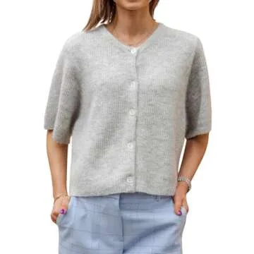 - Design: Short sleeves with a button-front for easy wear; features a crew neck and knitted open front.