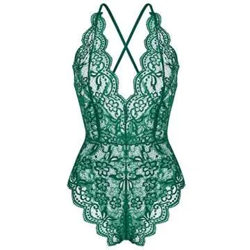 Women Lingerie One Piece Lace Teddy Bodysuit Babydoll Chemise Sleepwear (Green, M)