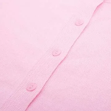 Show moreUnveil a new level of versatility with our exquisite Women Long Sleeve Button Down V Neck Cute Knit Sweater Cardigan. Available in a delightful shade of pink and designed with an eye for fashion, this cardigan not only elevates your outfit but also provides unmatched comfort. Its slim fit complements your figure without restricting movement, allowing you to layer it neatly over various attires. The long sleeves wrap you in warmth during transitional weather, while the elegant V-neck adds a fashionable touch. Why not embrace the cozy feel with a stylish flair?