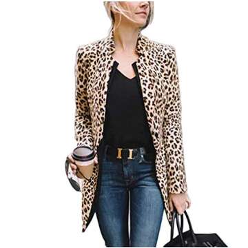 Women Long Sleeve Leopard Print Cardigan Open Front Blazer Casual Outwear Coat Jacket (XL, Leopard)