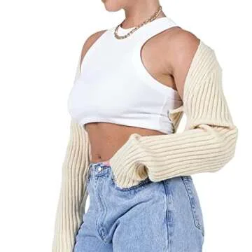 Women Long Sleeve Open Front Crop Top Drop Shoulder Ribbed Knit Cardigan Y2k Crochet Shrug Sweater(A1-Apricot,One Size)