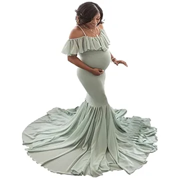Women Maternity Dress for Photography Lace Off Shoulder Straps Fish Tail Gown Long Wedding Pregnancy Dresses Photo Shoot MD08-MintGreen-M