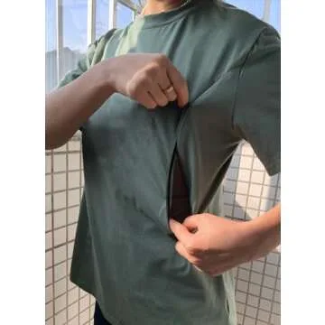 Women Maternity Shirt Comfort Colors Breastfeeding Nursing Friendly Zip Tshirt Causal Mama's Boobery Always On Tap Tops Blouse(M,Green 1)