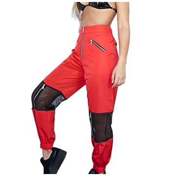 Women Mesh Stitching Jogger Pants Relax Fit Fashion Hiphop Dance Trouser Red S