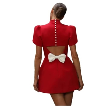 Show moreStep into a world of elegance with the Women O-Neck Short Sleeve High Waist A-Line Dresses Elegant Bow Hollow Out Mini Dress in vibrant red. Crafted to perfection, this stunning dress artfully blends style and comfort, allowing you to express your femininity effortlessly. Made from a mix of 97.6% polyester and 2.4% spandex, it offers a luxurious shiny finish while providing the flexibility needed for graceful movement whether you're attending a formal gala or enjoying a night out with friends. The dress is thoughtfully designed to skim the body, highlighting your curves while maintaining a flattering silhouette, making it a fabulous addition to any wardrobe.