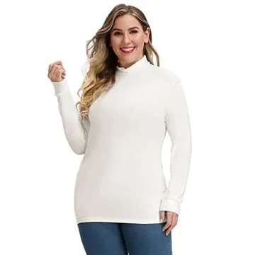 Women Plus Size Long Sleeve Mock Neck Lightweight Pullover Slim Shirt Tops