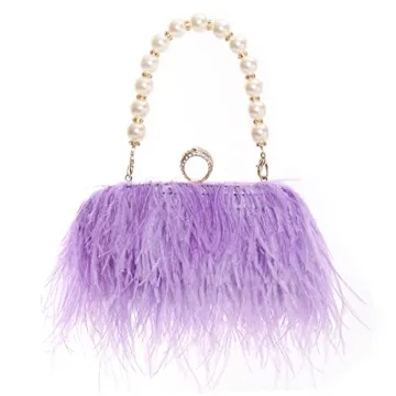 Women Real Natural Ostrich Feather Evening Bags Purses Clutch Vintage Banquet Handbag (purple)