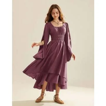 Show moreStep into a world of charm and elegance with our exquisite women's Renaissance dress, designed to captivate and enchant. This stunning piece showcases a unique blend of vintage allure and modern comfort, making it a must-have for any costume enthusiast or fashion-forward individual. The dress features split bell sleeves that gracefully add to its timeless aesthetic, while the smocked waist beautifully enhances your silhouette. With a playful double-layered high-low hemline, this garment evokes a romantic ambiance, perfect for any special occasion.