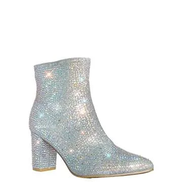 Women Rhinestone Block Chunky Heel Ankle Bootie Iceberg 12 By Forever shoes Silver 8