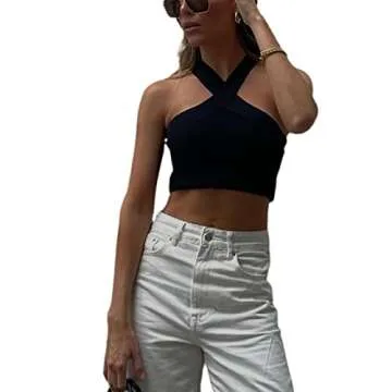- Design: Features a ribbed knit halter neck, crisscross design, and cropped length for a trendy look.