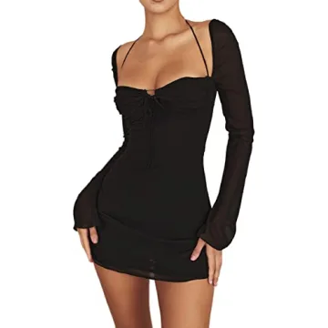 Show moreIntroducing the Women Ruched Cutout Mini Dress, a stunning piece that blends elegance with a flirtatious twist. This sexy halter dress features exquisite chiffon sleeves and a bodycon design that accentuates your curves in all the right ways. The soft and luxurious fabric hugs your silhouette, ensuring you feel as good as you look. With its unique sweetheart neck and alluring cutouts, this mini dress is guaranteed to make you the center of attention, whether you're attending a chic party or a casual dinner date. Available in a timeless black mesh, this dress combines versatility and style effortlessly.
