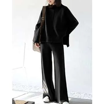 Show moreDiscover the ultimate blend of comfort and style with our Women’s 2 Piece Set Long Sleeve Knit High Neck Pullover Sweater Top and Wide Leg Pants Sweatsuit in classic black. This chic outfit set is designed for the modern woman, featuring a refined high-neck sweatshirt and wide-leg pants that effortlessly transition from cozy home wear to trendy street style. Crafted with a focus on quality and fit, this ensemble combines a timeless aesthetic with contemporary comfort. Perfect for layering during the fall or relaxing at home, this two-piece set is versatile enough to suit any occasion.