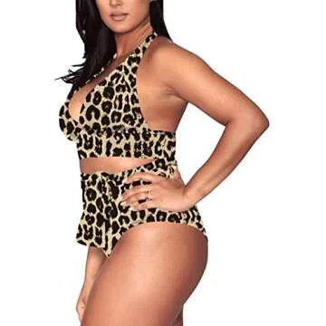 Women's 2 Pieces Plus Size Swimwear High Waist Halter Bikini Swimsuits Brown Leopard 4XL