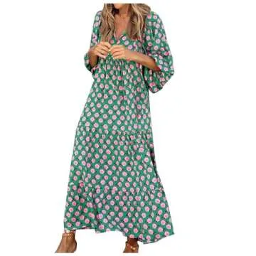 Women's 2024 Summer Maxi Dress Spaghetti Strap Spring Casual Boho V Neck Split Beach Long Flowy Dresses Trendy