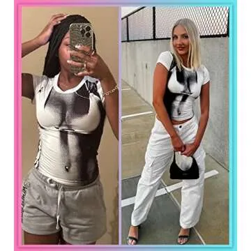 Women's 3D Body Print Crop Tops - Y2k Bikini Boob Graphic Tee Shirt Aesthetic Heat Map Sexy Festival Concert Outfit(ShortWhite,M,10821e)