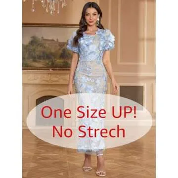Women's 3D Floral Embroidery Dress Ruffle Sleeve Fishtail Lace Bodycon Party Cocktail Mixi Dress (US, Alpha, Medium, Regular, Regular, Sky Blue)