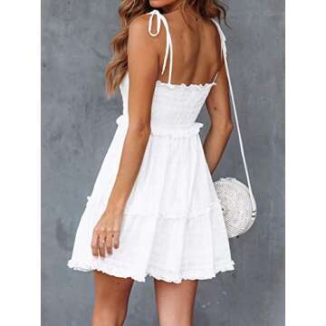 Women's Adjustable Straps White Mini Dress Strapless Tube Top Dress (L, White)
