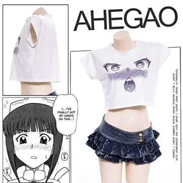 Women's Ahegao Print Short Sleeve Crop Top Casual Round Neck Soild Basic T-Shirt (Ahegao) One Size