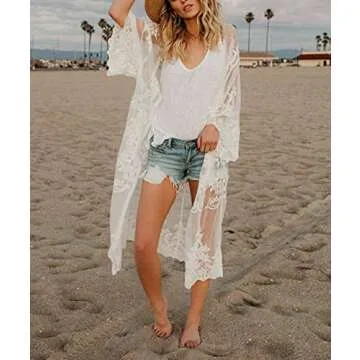 Why You Will Love This Product?You will love this kimono for its ability to combine elegance with ease. The moment you slip it on, the soft fabric wraps you in comfort while the stunning lace inspires confidence. Whether you’re swimming, sunbathing, or meeting friends for lunch, you'll feel like the best version of yourself. It's not just a cover-up; it's an invitation to feel beautiful in your own skin as you create unforgettable summer memories. Enjoy the compliments you'll receive and relish being the center of attention wherever you go!
