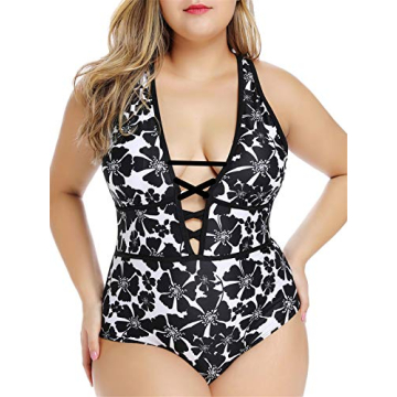 Our plus size floral one piece swimsuit stands out from the competition with its unique combination of style, comfort, and functionality. Unlike other swimsuits that may sacrifice design for comfort or vice versa, our swimsuit offers the best of both worlds. The plunge neckline and lace-up detail provide a fashionable look, while the slimming tummy control and removable padding ensure a comfortable and flattering fit.