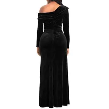 Show moreIntroducing the exquisite Women’s Black Velvet Formal Dress, the perfect blend of elegance and modern design tailored for those who want to make a statement. Crafted with an eye for detail, this stunning dress features a unique one-shoulder cut coupled with a long-sleeve design, all expertly ruched to create a flattering silhouette that accentuates your figure. The rich black velvet fabric is not only a testament to luxury but also provides a comfortable fit, allowing for a graceful flow as the mermaid skirt cascades to the floor. Whether you're attending a captivating soirée or a romantic wedding, this gown is your go-to choice for an unforgettable entrance.
