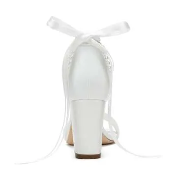 Women's Block Heel Wedding Shoes for Bride Open Toe Chunky Heeled Sandals Pearl Bridal Pumps Shoes Ivory US5
