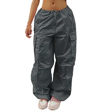 Show moreIntroducing the Women’s Cargo Pants Low Waist Leisure Jogging Light Hiking Sporty Workout Wide Leg Baggy Trekking Pocket Streetwear in elegant gray, the perfect blend of comfort and style. Crafted from high-quality polyester, these pants not only provide a lightweight and breathable wearing experience but also feature a trendy low-rise design complete with chic lace-up details and practical button accents. Designed for versatility, these pants transition seamlessly from casual outings to active adventures, making them a must-have addition to any woman’s wardrobe.
