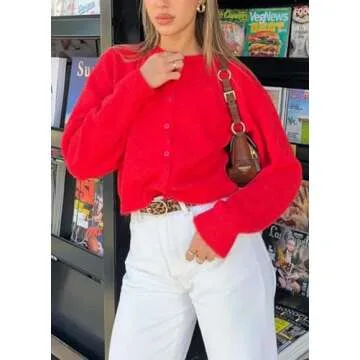 Show moreStep into the season of style and comfort with our Women’s Casual Crop Knit Cardigan. This eye-catching cardigan is designed not only to keep you cozy but also to elevate your wardrobe with its chic yet casual charm. Made from a premium blend of 5% cotton and 95% elastane, this cardigan promises a soft, skin-friendly texture that feels delightful against your skin. Its vibrant red hue is perfect for the Y2K-inspired aesthetic, making it a fun addition to your fashion lineup.